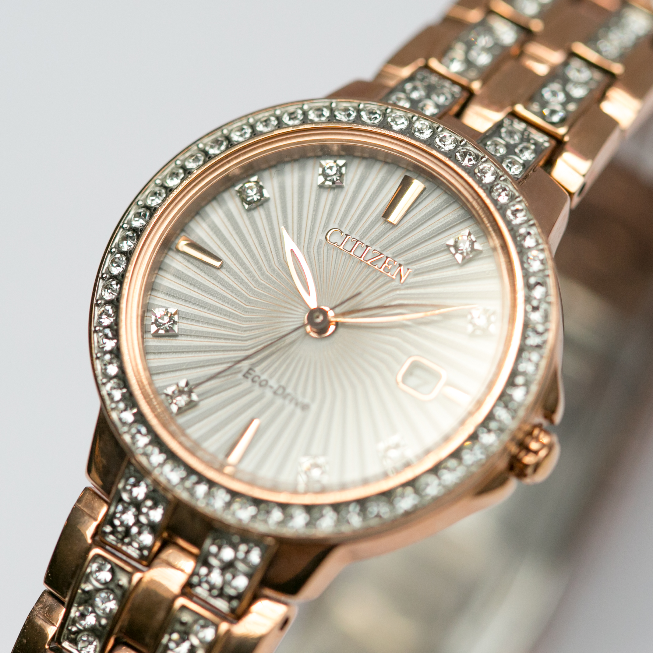 CITIZEN Eco Drive Women's White Face Rose Gold Watch